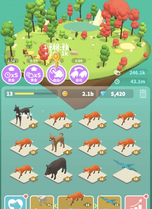 3、將兩只相同等級的基礎(chǔ)動物進行合成,有幾率獲得全新的稀有動物,合成的動物等級越高,外觀越獨特。