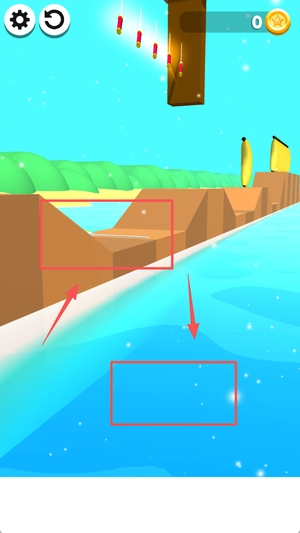 刀具一旦掉進下面的河流就會失效,這一關(guān)就不能再用了,所以得小心掌握每次下落的時機,保證命中率。