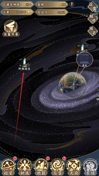 打開游戲進(jìn)入到游戲中點(diǎn)擊種族誕生發(fā)展祖星提升戰(zhàn)力