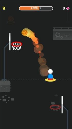 2、點(diǎn)燃你熱血的籃球,劃出完美軌跡精準(zhǔn)入網(wǎng),迎接更多挑戰(zhàn)關(guān)卡;