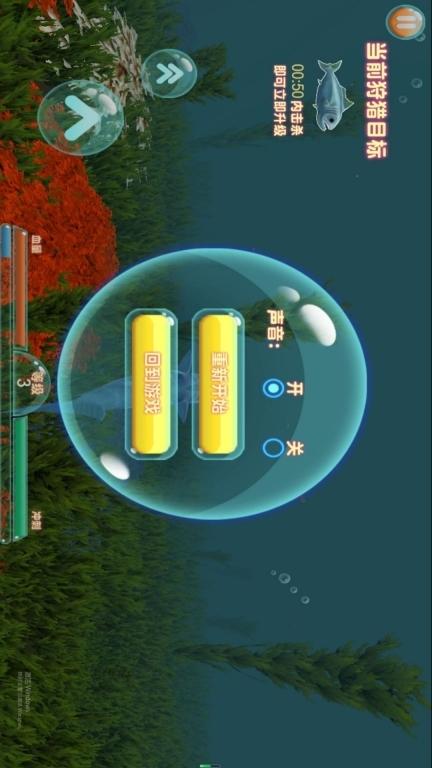 3、當(dāng)生命值快要耗盡時(shí),朝著小魚(yú)聚集的區(qū)域游動(dòng),一邊躲避大魚(yú)的攻擊,一邊捕食小魚(yú)來(lái)快速恢復(fù)生命值。