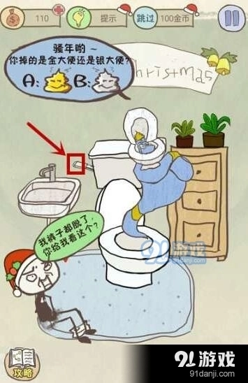 阿拉丁神燈問(wèn)你拉的是什么樣的便便,不用管它,直接點(diǎn)擊旁邊“沖水按鈕”沖走就可以通關(guān)啦。