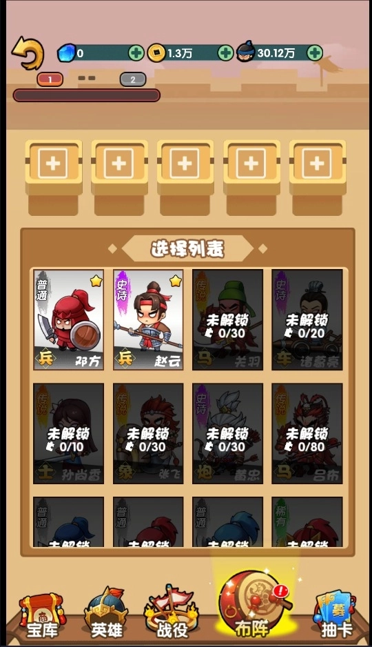 2、點擊布陣,選擇上陣的英雄,布置陣容。