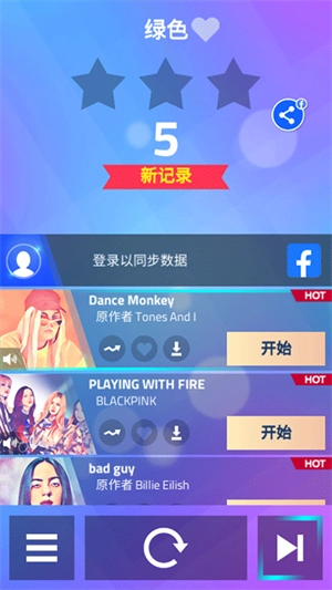 4、背景音樂(lè)就是你所選關(guān)卡的專屬音樂(lè),你可以依據(jù)音樂(lè)的節(jié)奏與速度來(lái)調(diào)節(jié)手指操作的快慢,因此戴上耳機(jī)體驗(yàn)才是這款游戲的精髓所在!