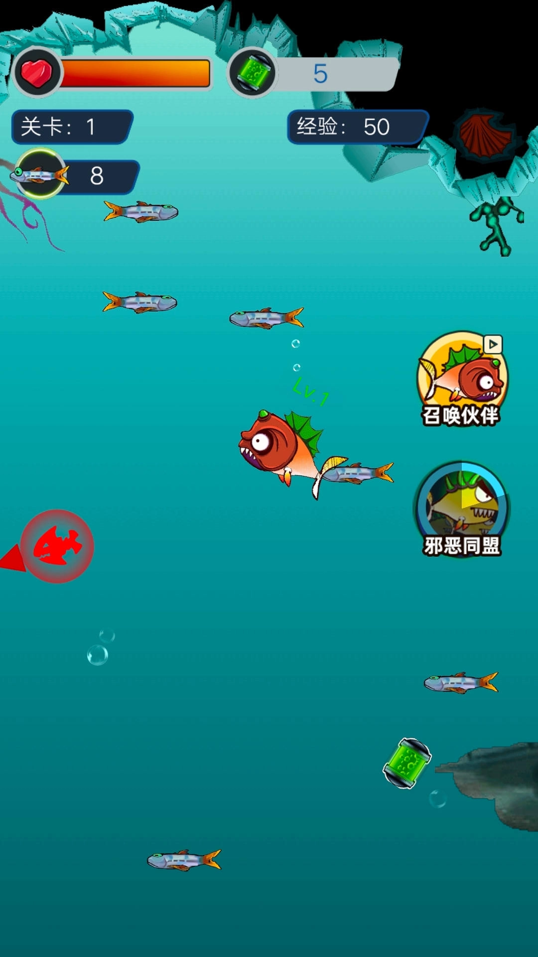 3、探索深海中的珍貴寶藏以獲取成長所需的資源,購買各類奇特道具來幫助你應(yīng)對各種危機(jī)。