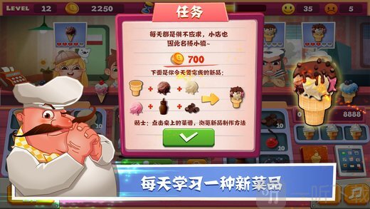 2. 玩家得持續(xù)升級自己的商店。商店等級越高,冰淇淋的售價也就越高。