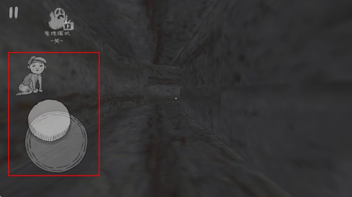 4、在狹窄通道這類場景中,依舊可以通過左側(cè)操縱桿配合點(diǎn)擊下蹲動作,來控制角色移動,從而進(jìn)一步深入探索,推動解謎流程,并避開可能存在的恐怖元素。