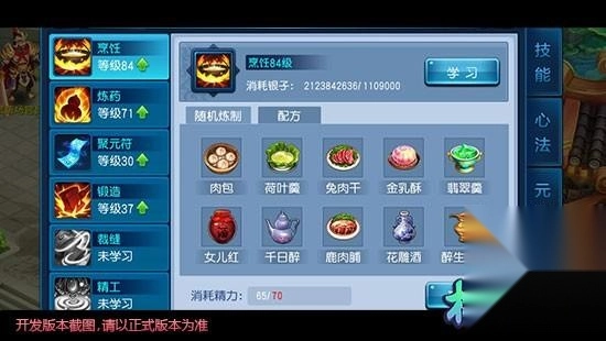 1、通過制藥與烹飪來滿足日常需求,同時(shí)學(xué)習(xí)制作符紙和烹飪技藝。烹飪產(chǎn)出的大藍(lán)與大紅道具,能幫助節(jié)省一部分金票開支。