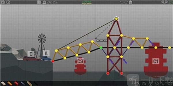橋梁構(gòu)造者是一款益智休閑類游戲,采用3D引擎打造。在游戲里,你需要合理規(guī)劃預(yù)算,建造出能讓小汽車順利通行到對岸的橋梁。這是一款既有趣又自由的游戲,提供了豐富的材料和道具,你得用最少的花費(fèi)讓載具成功抵達(dá)對面——你能完成這個挑戰(zhàn)嗎?