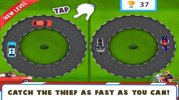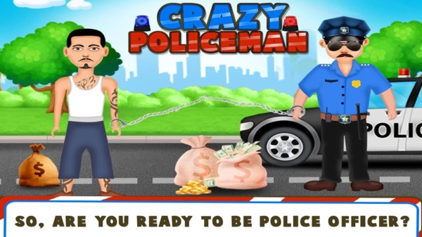 一款扮演警察隨時(shí)去逮捕犯人的兒童模擬游戲,橫版動(dòng)畫(huà)游戲場(chǎng)景;