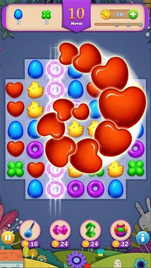 1、玩法很簡單,玩家只需滑動手指,把三個及以上的糖果連在一起就能消除。