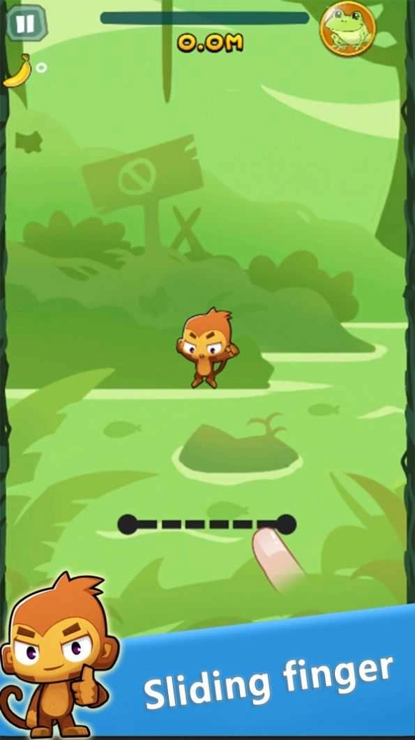 在游戲里,您得滑動(dòng)手指來(lái)制作一根彈性繩,借助彈力讓猴子跳得更高。