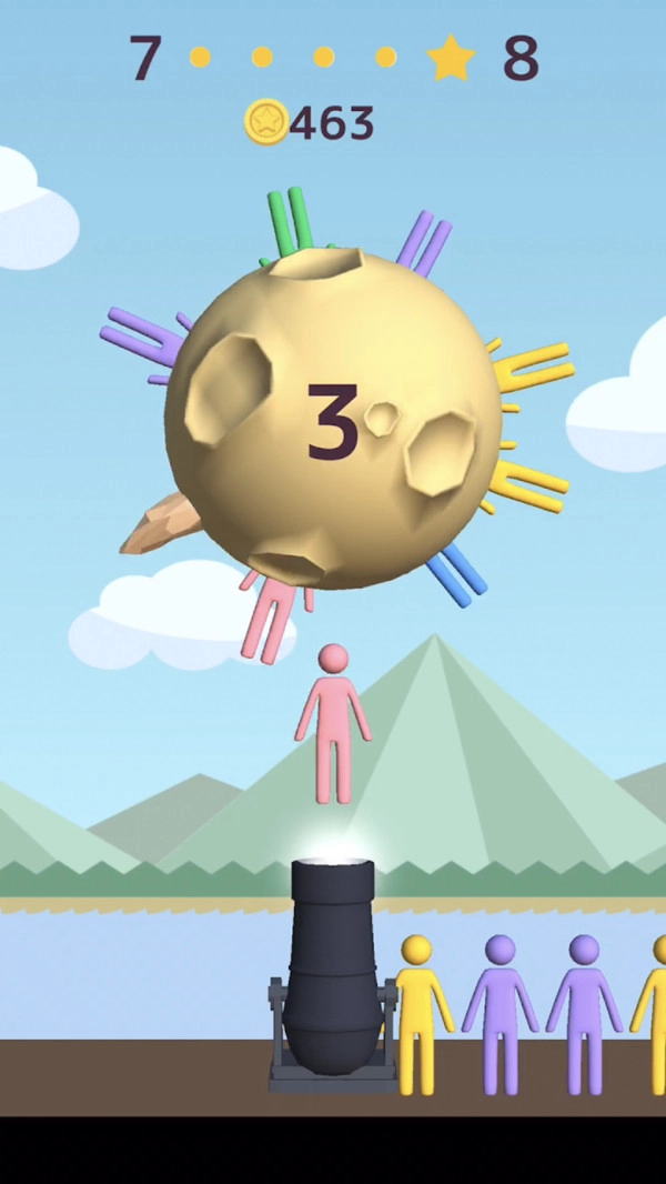 人體炮彈是一款魔性搞怪的趣味射擊游戲,簡單來說就是把小人發(fā)射到太空中的隕石上。不過要注意,不能重復射擊同一目標,也不能讓小人互相碰撞。操作很簡單,玩家只需瞄準發(fā)射就行,但得瞄得更精準一些哦。還在等什么?快來試試吧!