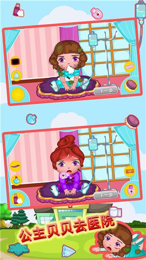 2、角色扮演:化身小醫(yī)生,協(xié)助醫(yī)治生病受傷的小公主貝貝。