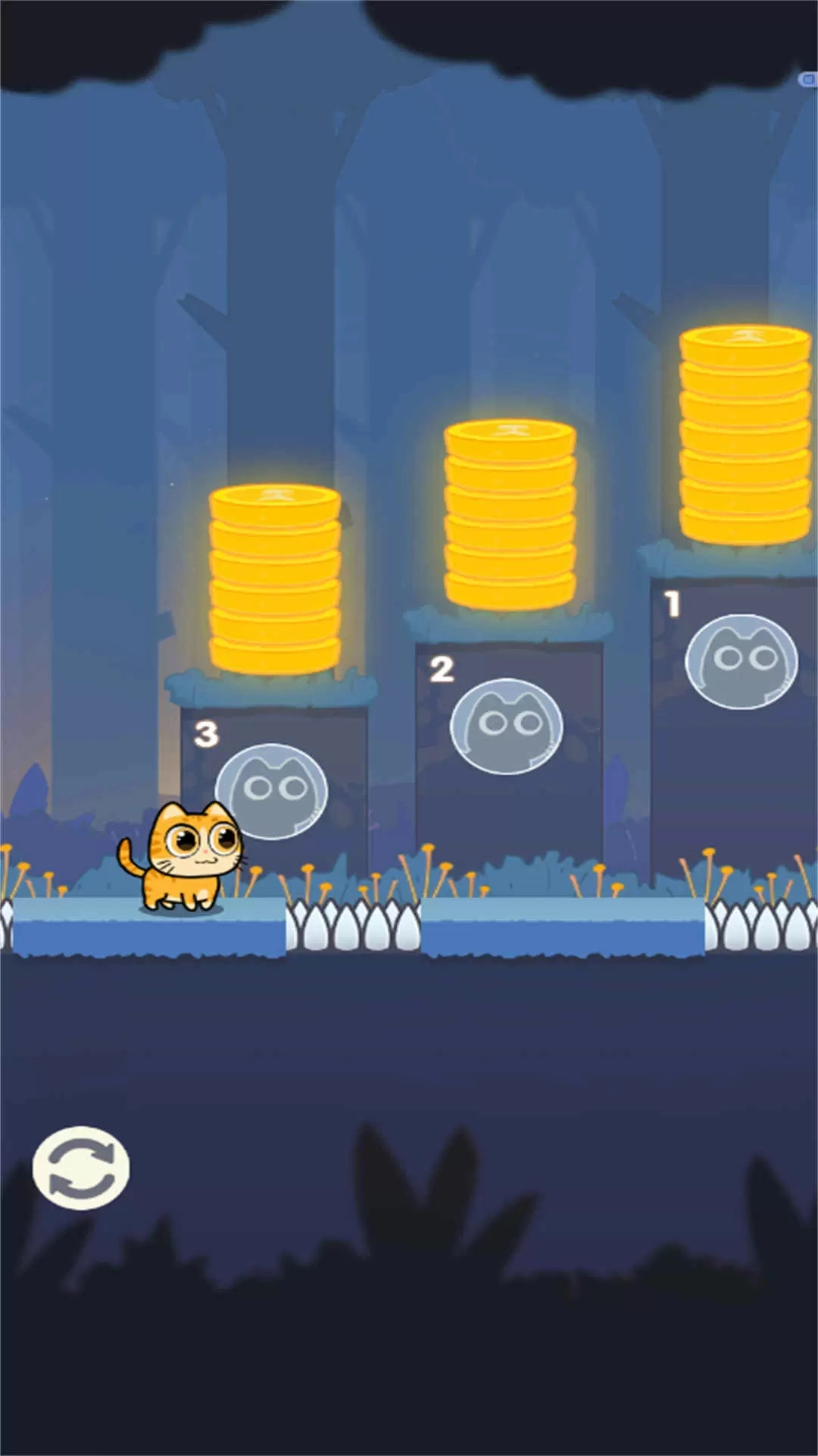 2. 游戲采用獨(dú)特有趣的移動(dòng)機(jī)制,玩家需操控小貓通過蓄力完成跳躍,蓄力時(shí)長直接決定跳躍的遠(yuǎn)近距離。