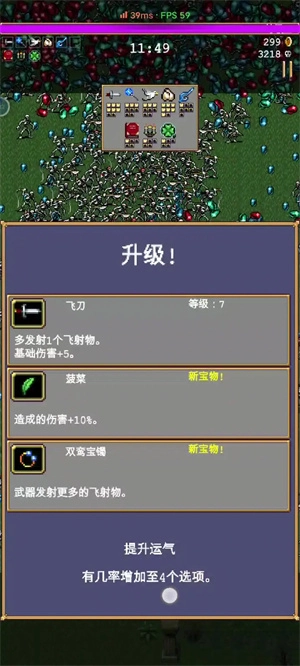 3、武器選擇:藍(lán)杖(自帶)、回旋鏢、圣水、火杖、斧子,以及其他任意武器。