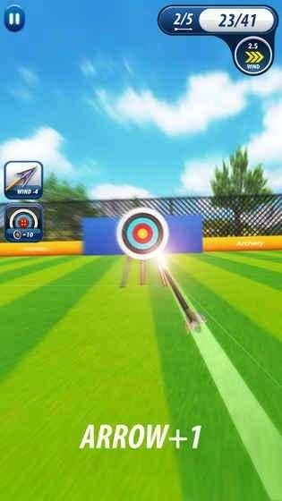 1、這是一款真實(shí)的3D射箭游戲,你只需拉動(dòng)弓弦,就能把箭射向靶子。