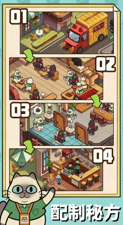 玩家將經(jīng)營一家充滿貓的貓臟的咖啡館,玩家必須照顧每只貓,以確保他們可以生產(chǎn)大量的咖啡豆,而玩家必須接受每個客戶。多種類食材和咖啡等你來解鎖進行創(chuàng)作,豐富圖鑒收集,治愈經(jīng)營從現(xiàn)在開始!