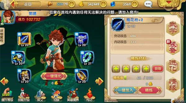 2、裝備強(qiáng)化:消耗金幣能夠?qū)φ诖┐鞯难b備進(jìn)行強(qiáng)化操作。強(qiáng)化之后裝備的屬性會(huì)得到提升。裝備允許強(qiáng)化的等級(jí)上限與穿戴該裝備的英雄等級(jí)一致。