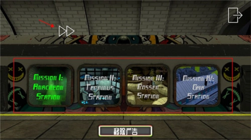 3、選擇關(guān)卡時(shí),點(diǎn)擊快進(jìn)圖標(biāo)可進(jìn)行切換;點(diǎn)擊第一關(guān)會(huì)彈出“逃離Anacreon站”的提示,點(diǎn)擊“玩”即可進(jìn)入游戲。