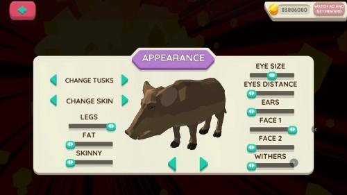 -根據(jù)需要自定義豬。選擇皮膚、象牙、鼻子參數(shù)。